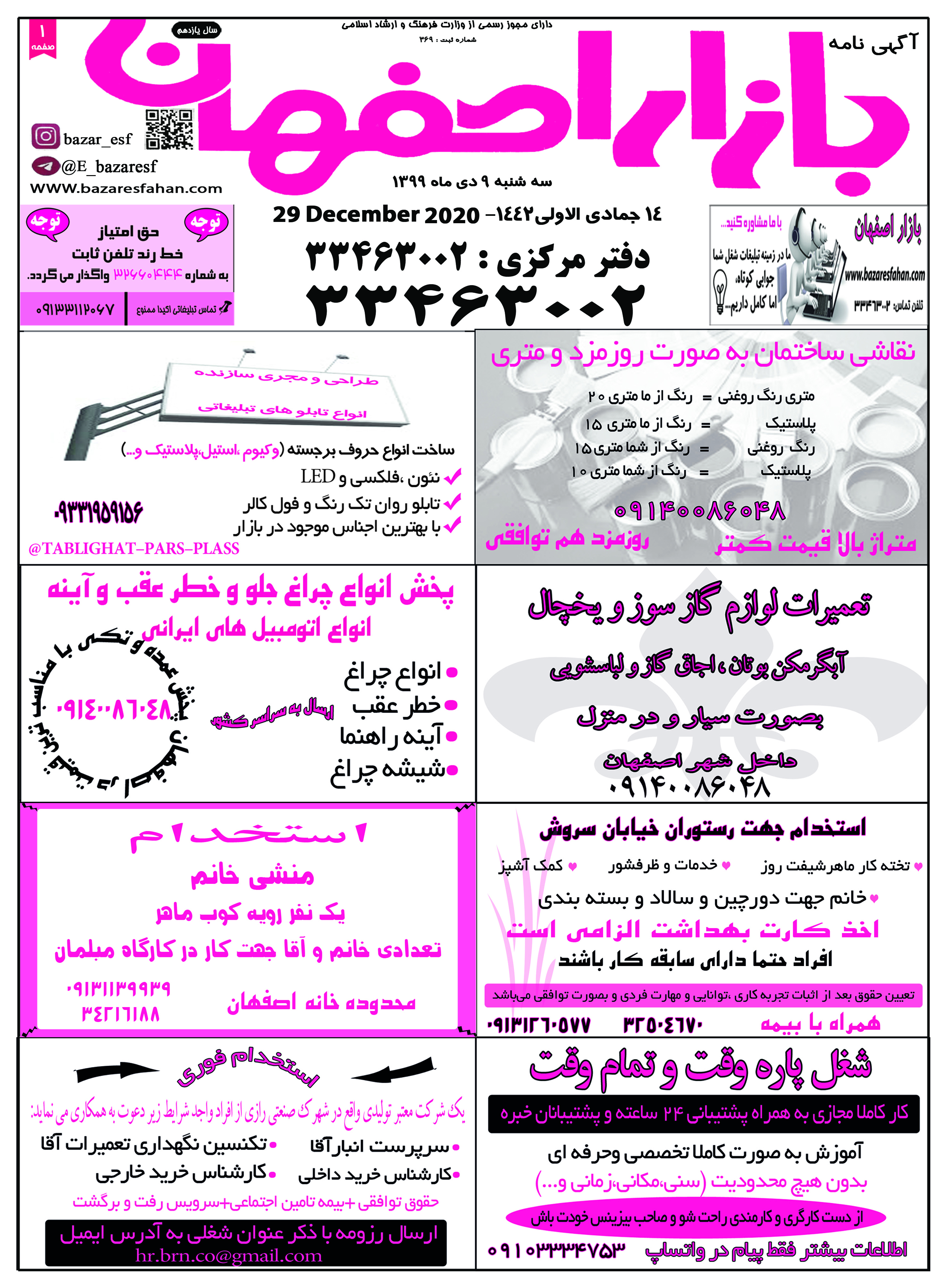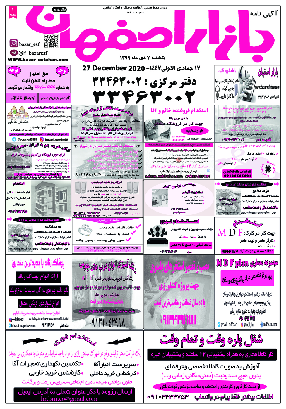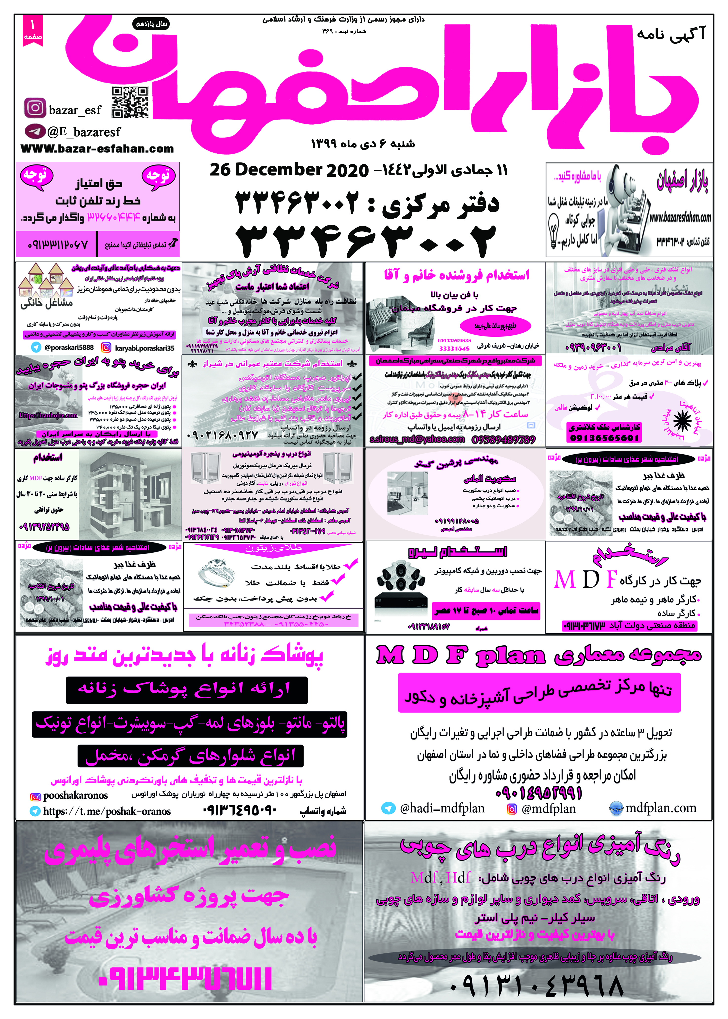 1399/10/08 صفحه اول نيازمندی بازار اصفهان در تاریخ 1399/10/08 صفحه دوم نيازمندی بازار اصفهان در تاریخ 1399/10/08 صفحه سوم نيازمندی بازار اصفهان در تاریخ 1399/10/08 صفحه آخر نيازمندی بازار اصفهان در تاریخ 1399/10/08